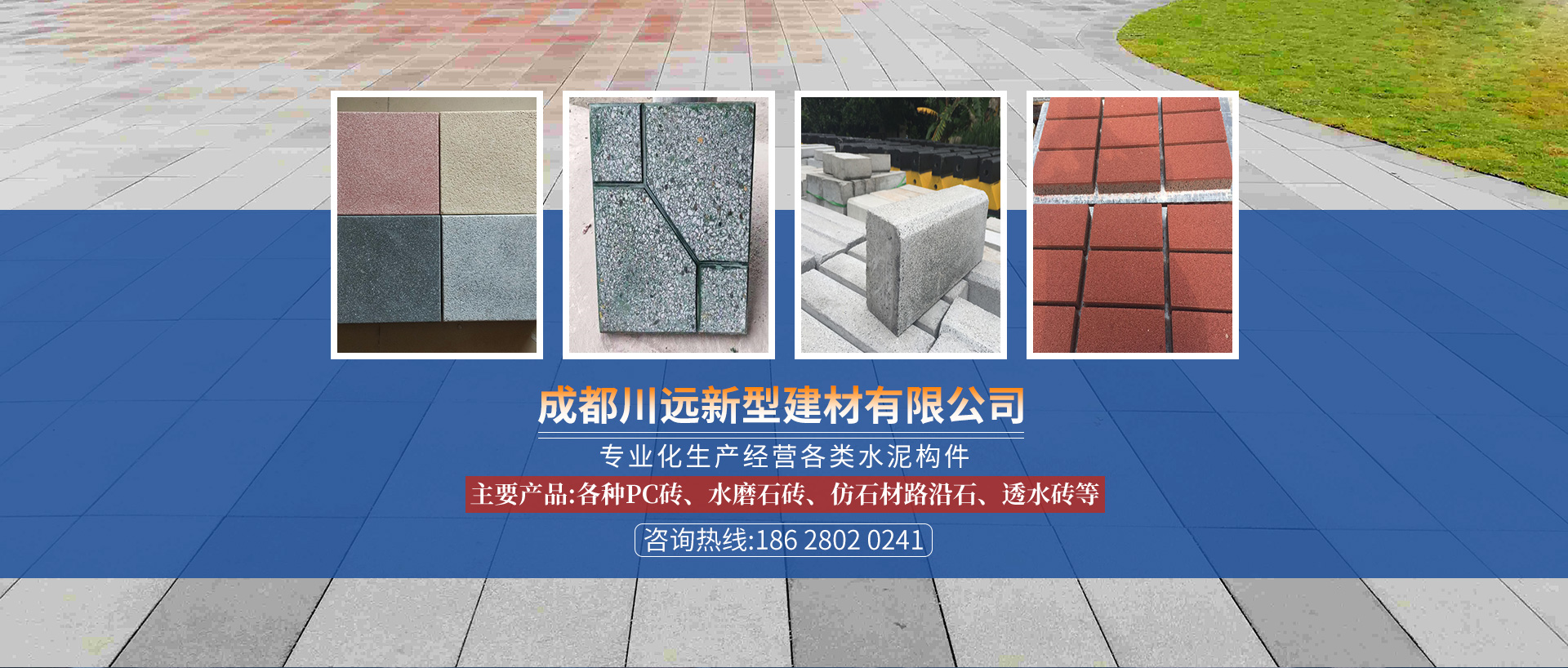 成都川遠(yuǎn)新型建材有限公司是一家專(zhuān)業(yè)化生產(chǎn)經(jīng)營(yíng)透水磚、pc磚定制,仿石材路沿石、水磨石磚的企業(yè)。擁有了面積達(dá)1000多平方的生產(chǎn)基地,多套完整的大、中型生產(chǎn)設(shè)備和眾多專(zhuān)業(yè)生產(chǎn)技術(shù)人員。本廠生產(chǎn)的各種型號(hào)等...